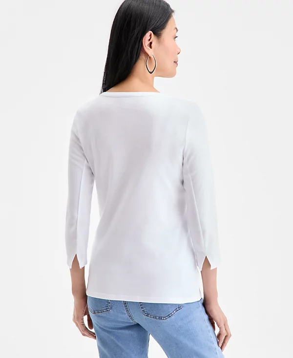 Women’s Pima Cotton 3/4-Sleeve Boat-Neck Top, Regular & Petite, Created for Macy’s