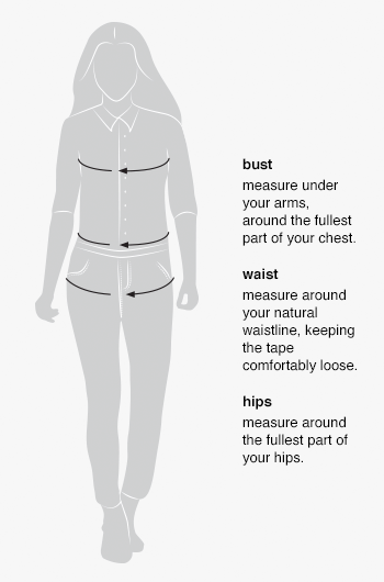 Size | Bust (in.) | Waist (in.) | Hip (in.) |