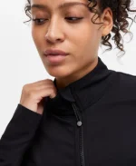 - Stand collar; front full-zip closure